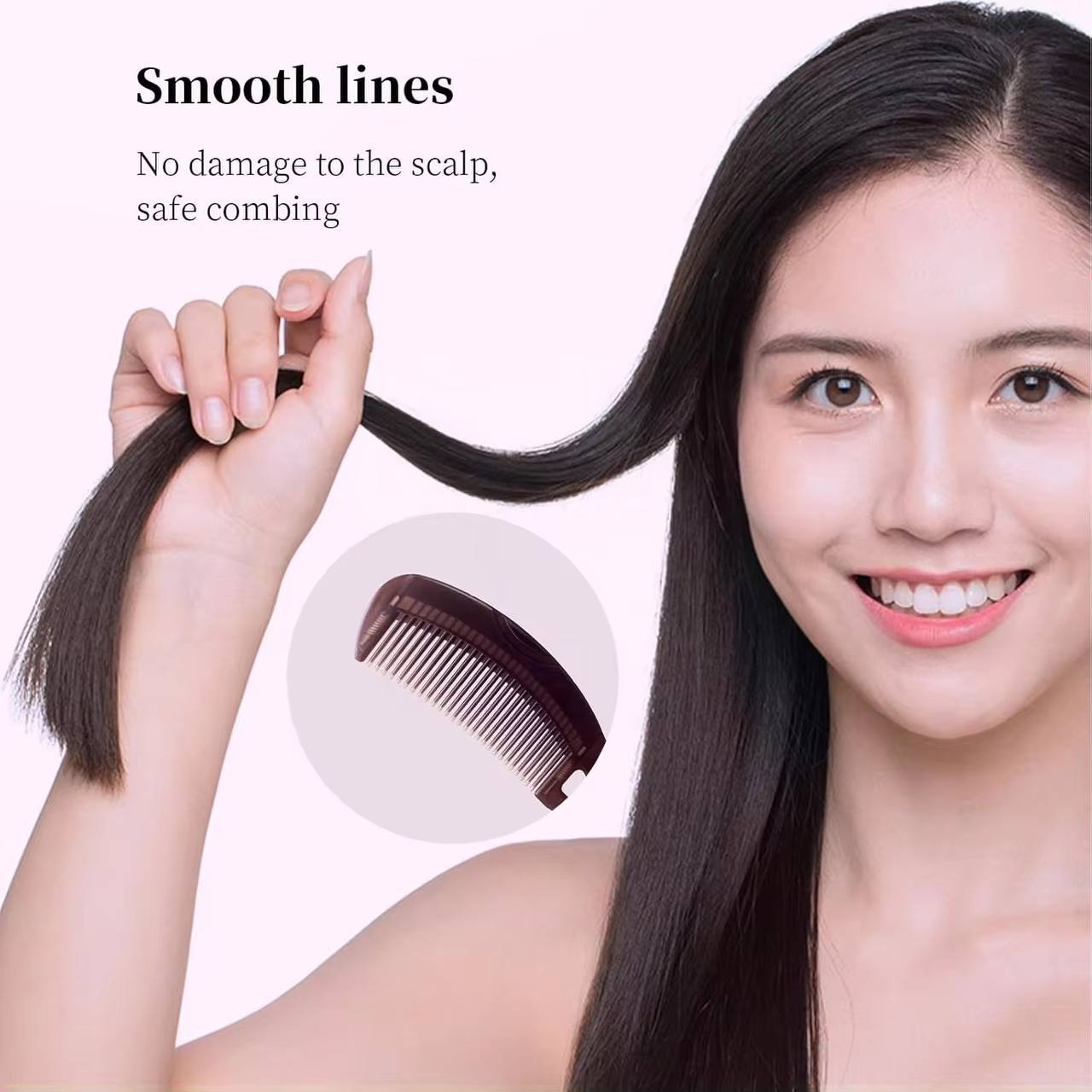 - Rounded teeth softly massage the scalp.